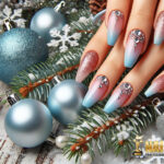 3. Midnight Blue and Glitter Stars Capture the essence of the night sky with midnight blue nails adorned with glitter stars. You can use star-shaped nail decals or hand-paint them for a whimsical touch. This look is ideal for those who want something unique yet festive.