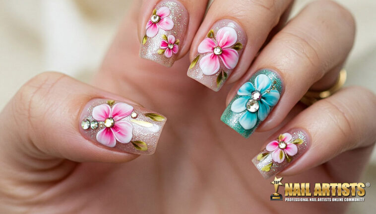 Layer with Care: Apply a base coat to protect your nails, followed by the floral design and a top coat for durability.